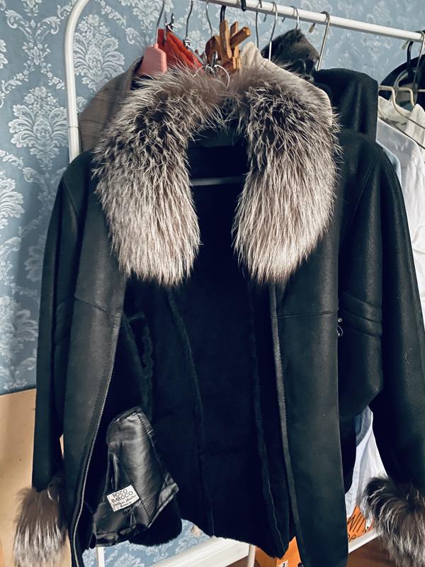 Дублянка натуральна з хутром чорнобурки. Підійде на наш 46+/- розмір. Рукав цільнокроєний- японка. Є кишені. Вироблено Roco Baroco. Стан нової речі, не носилася. У грудях - вільно, бо фасон «японка», довжина по спинці без урахування хутра- 60 см, плечі- 41 см, рукав від плеча- 58 см, пояс- 49 см, баска по низу- 58 см