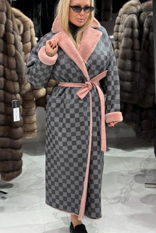 Очень красивая не обычная дубленка с немцем розовым и серый цена 799$