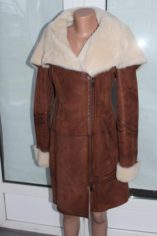 Довга коричнева дублянка для жінок з натуральним хутром - стильний вибір для холодних днів Стан нової, одягала 2 рази Замір по виробу Ширина плеч 40 см Обхват грудей 88 см Обхват талії 82 см Обхват стегон 92 см Довжина виробу 88 см Довжина рукава 69 см