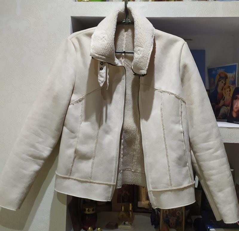 Женская, дубленка кремового цвета, утепленная.