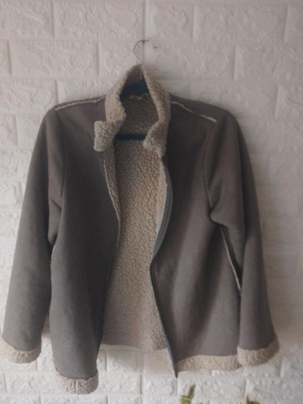 Легкая дубленка,на замочке,серого цвета полу объем груди,-48 длина рукава -60 длина куртки-65см