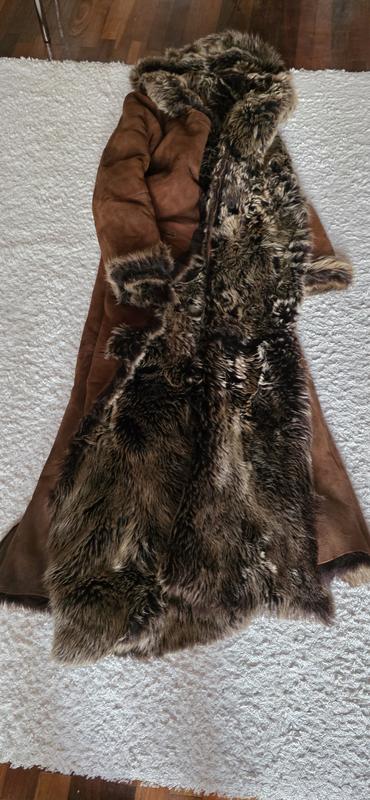 Женская натуральная длинная 130см дубленка из Тоскана. Коричневая, необыкновенно мягкая, теплая, легкая. Раз. М-L. С капюшоном. Цена 6000тисов.