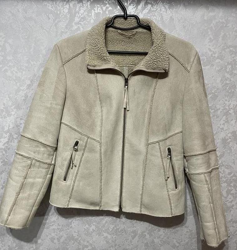 Ніяких дефектів немає Довжина 59 Пог 51 Пот 48 Плечі 42,5 Рукав 60 Трішки тягнеться Не натуральна