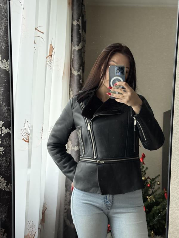 Дублянка Напів обʼєм грудей 45 см Напів обʼєм талії 43 см Довжина виробу 53 см Довжина рукава 59 см Розмір: S-M Стан: хороший Матеріал: зам. шкіра, еко хутро Дефекти на останніх фото