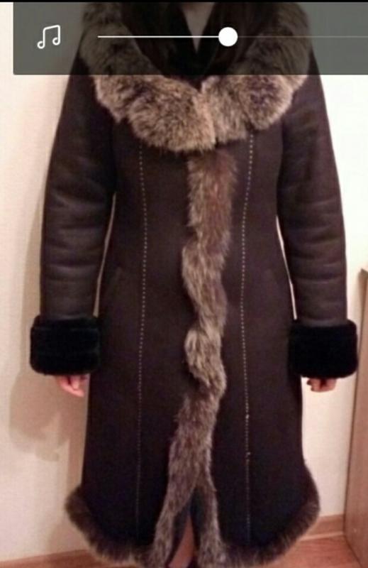 Дубленка искусственная, опушка натуральное-енот, капюшон отстегивается, одевала пару раз.