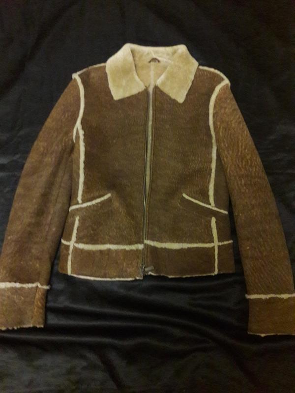 Короткая дубленка ( овчина). Плечи 45 см. Ширина спинки 45 см. Длина 57 см. Длина рукава 66 см ( можно отвернуть на любую длину). Одета несколько раз. Покупала в Турции за 460 долларов.