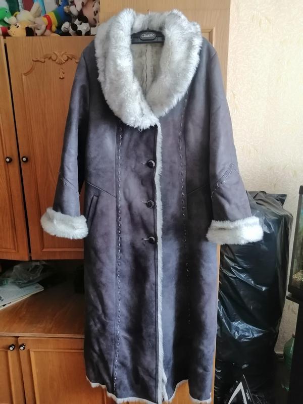 Дублянка в хорошому стані, штучний мех, тепла, дуже гарна, красивый мех на груді Трапецією Довжина по спині 135 Довжина Рукава без завороту 70 Плечі 45 Пів. Об. Під руками 50 Ширина в низу 170