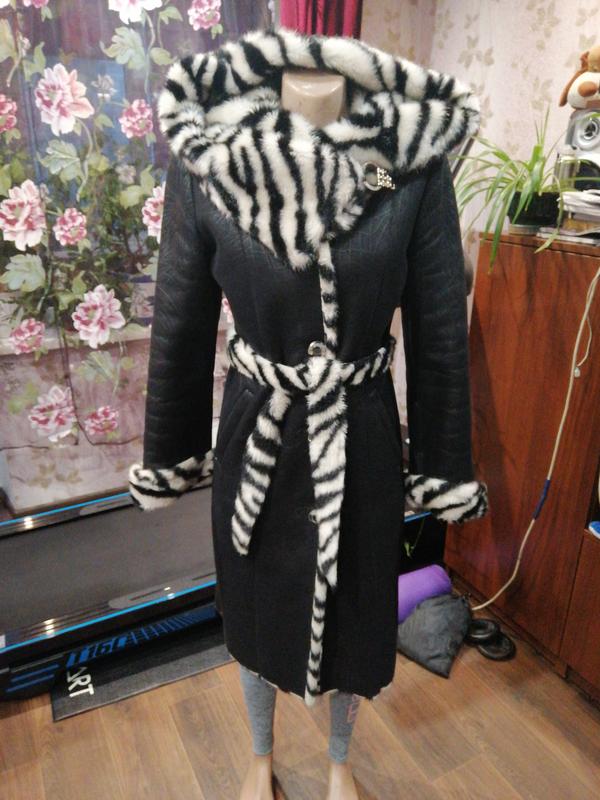 Очень красивая дубленка с капюшоном , приталенная, тёплая, не промокает, искусственная, можно стирать в машинке