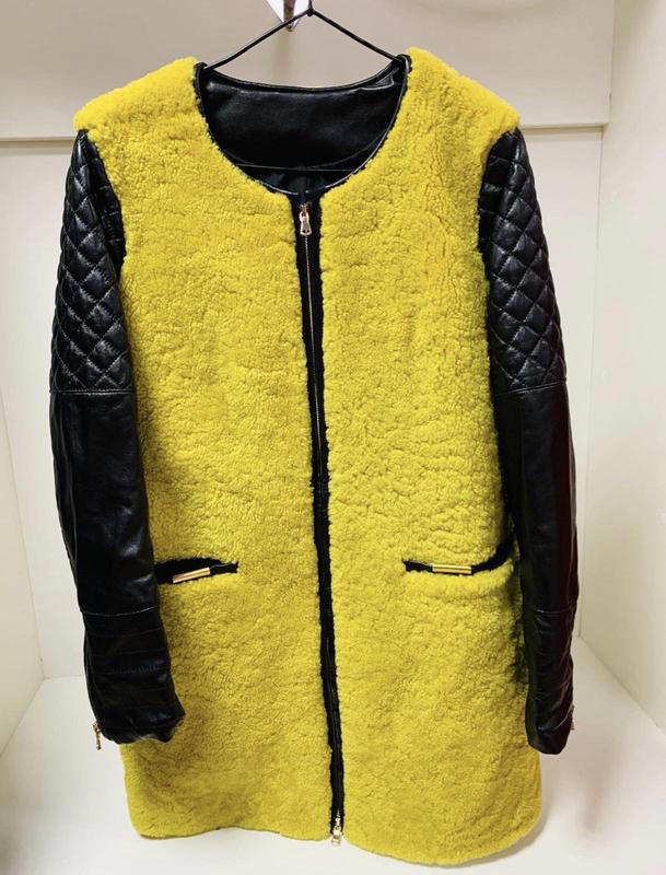 Натуральна дубленка с комбинированными кожаными рукавами
