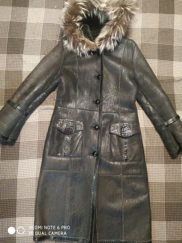 Натуральная кожа, с изнанки мех. На капюшоне чернобурка. Требует полировки на рукавах. В целом состояние хорошее. Длина по спинке 113см, плечо с рукавом 77см, ширина спинки 41 см.