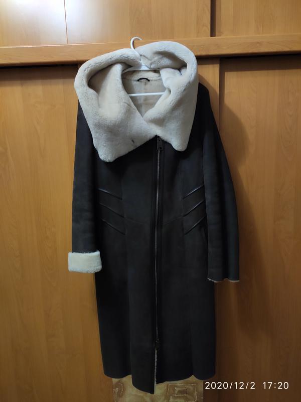 Дубленка с натуральной кожи. Мех - овчина. Очень теплая. Одевалась пару раз. Подойдет на размер m. Цвет серо-коричневый.