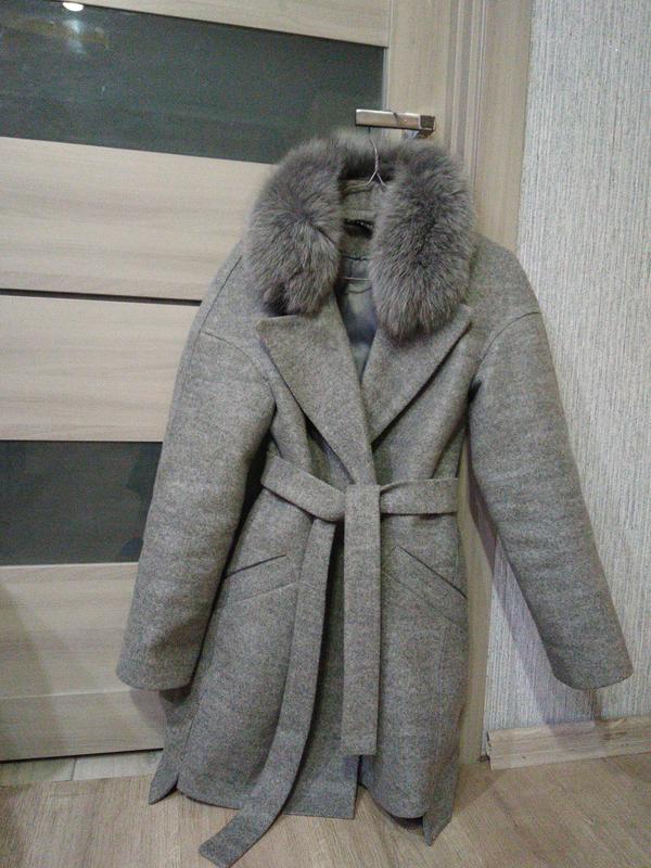 теплое стильное пальто натуральный мех в составе шерсть сезон зима , можно осень