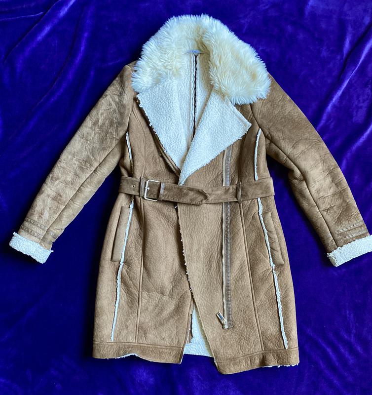 Дублёнка из качественной эко-замши , с карманами , по принципу косуха , с поясом, все в идеале , на грудь до 100 см , размер 10 или 38