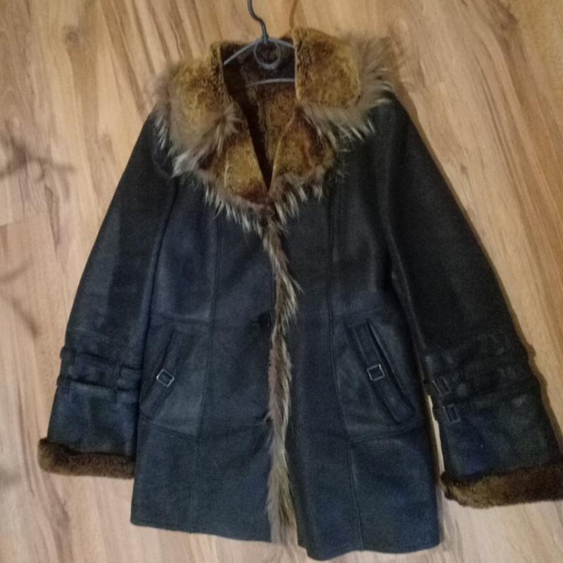 Утеплюємось! Гарна тепла дублянка з натурального хутра (всередині - цигейка). Дуже круто виглядає. Оздоблення по коміру - хутро єнота. З кишенями, приталена, довжину рукава можна відрегулювати (відвертається на будь-яку довжину руки!). виміри: довжина 73 см, рукав 70 см, плечі 43 см, пог 52 см, пот 47 см, поб 52 см. Туреччина.