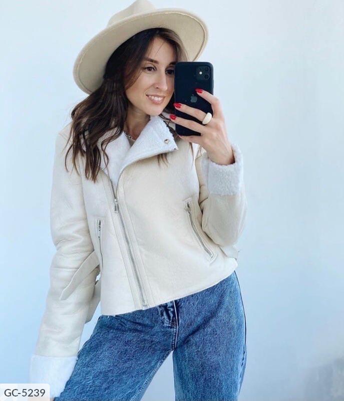 Укороченная дубленка 2 цвета белый и черный Производитель китай