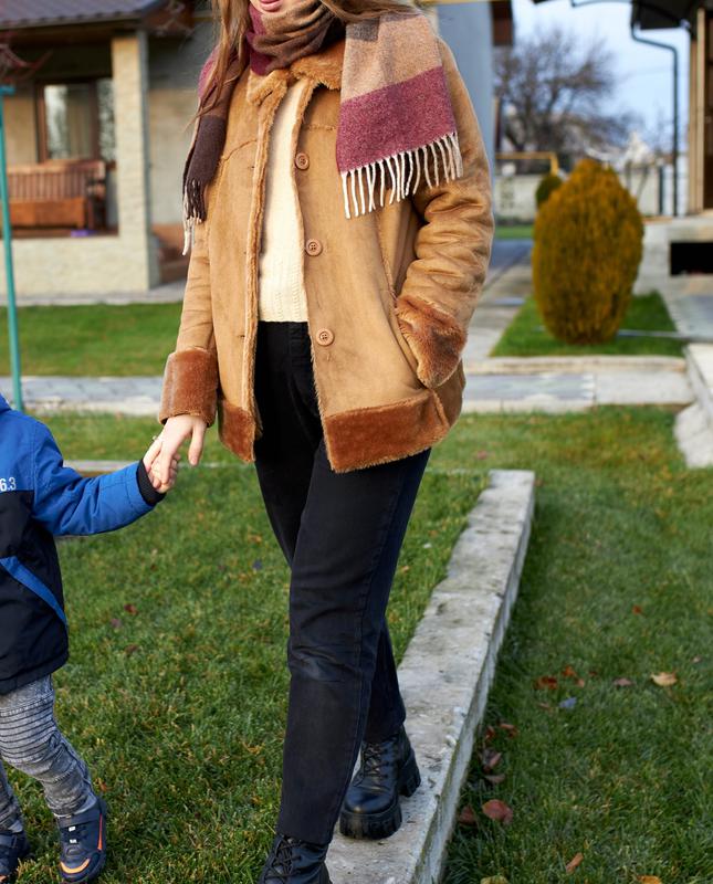 очень мягусенка дубленка. одетая 1 раз. новая. без нюансов. замеры : плечи 45 см ( слегка опущенные - оверсайз) длина 66 см ширина 48 см длина рукава 59 см подойдет на осень - весну. так как она не из очень плотного меха. на последних фото немного помяти, так как была сложена в коробке.