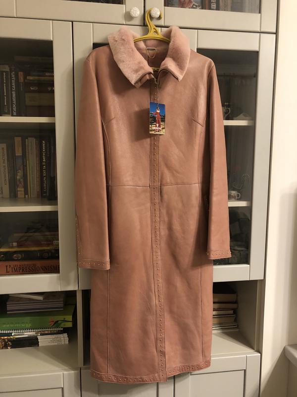 Дубленка из натуральной кожи, с короткой шерсти. Пыльно розового цвета, по рукавам и манжетам золотые вставки. Фурнитура золотого цвета. Прямого кроя, но благодаря поясу который идёт в комплекте можно подчеркнуть фигуру. Размер на - XS, S , небольшую М По дополнительным замерам обращайтесь.