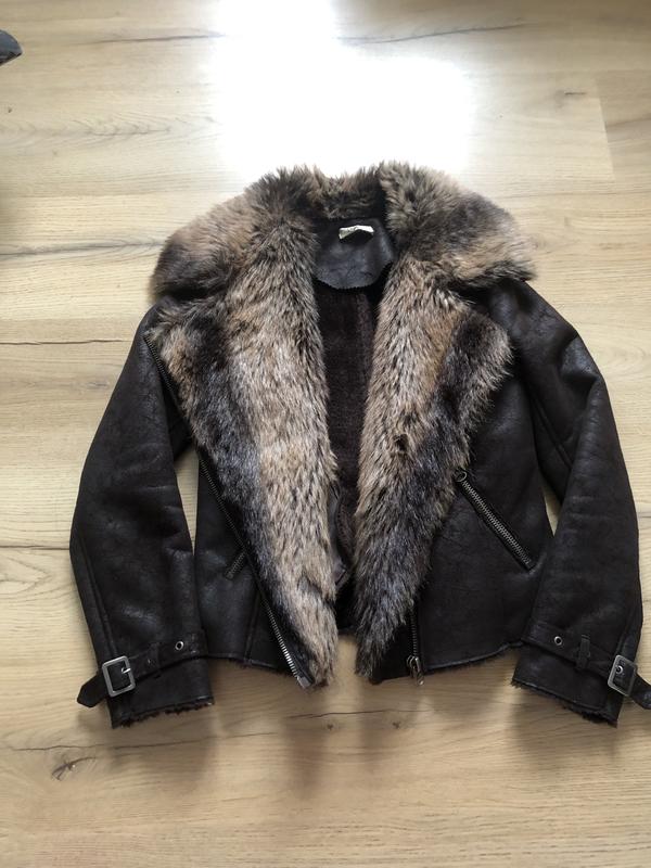 Дублянка Розмір 8 - S Коричневого кольору Штучне хутро Утеплена з середини 2 кишені Застібається навскоса Стан ідеальний