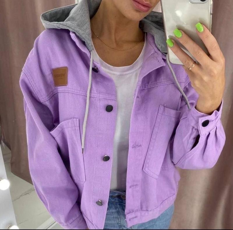 😍Новинка Мод. 105-5053 ⠀ 🦋Курточка ⠀ 🌸Колір: -ліловий -хакі -малиновий 🌸Розмір: S-M; M-L ⠀ 🦋Тканина:джинс бенгалін + двонитка ⠀ 🦋Джинсова куртка - річ універсальна, що дозволяє виглядати стильно, молодіжно і почуватися комфортно в будь-якому образі . Це ідеальний варіант для осінніх прогулянок та прохолодних літніх вечорів. Курточка застібається на гудзики, капюшон знімається. ⠀ 🌸Доставка 1-10дні 🦋Повна оплата на карту ⠀ 💸Ціна 629 грн.