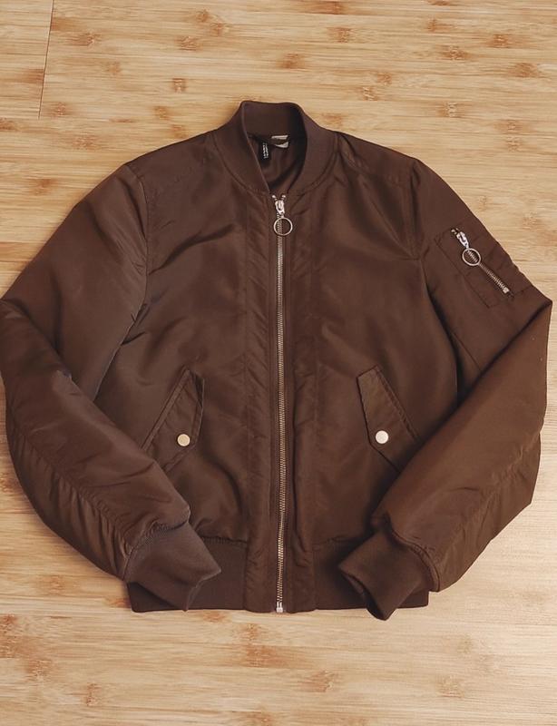 Бомбер , состояние идеальное,цвет скорее зелёный,чем коричневый.Размер Хс-С.Длина 54 см,длина рукава 61 см.ПОГ 46 см.