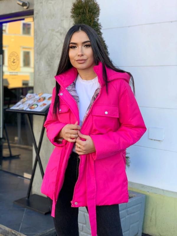 Куртка Модель АК 090 Ціна 600 грн Розміри 42/44, 46/48 Тканина плащівка канада Кольору:соковито зелений,небесно блакитний,малина ,чорний. Синтепон 100 Куртка на змійці, додатково застібається заклепками Капюшон відстібається