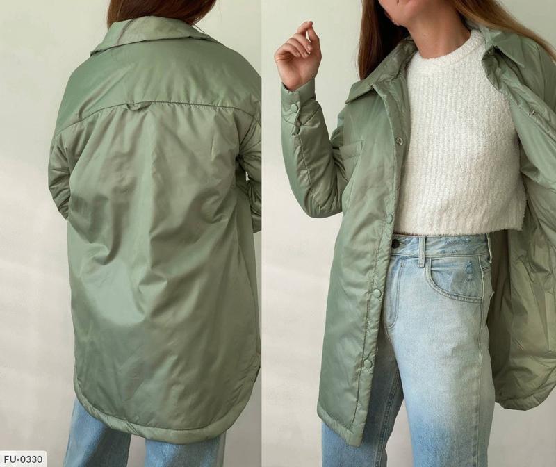 Куртка FU-0326 арт. 5-270 Розмiри: 42-46 Опис: тренд сезону! Куртка-сорочка з плащової тканини. Утеплювач силікон 100. Застібається на кнопки в колір основи. На рукавах манжети теж на кнопках. Підкладка з основи! Колір: перлинний