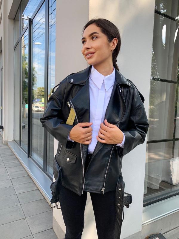 Очень трендовая косуха Aftf Basic 🔥 Размер: S ( 42-44); M ( 46-48) Материал: плотная эко-кожа, качественная фурнитура Цвет: чёрный