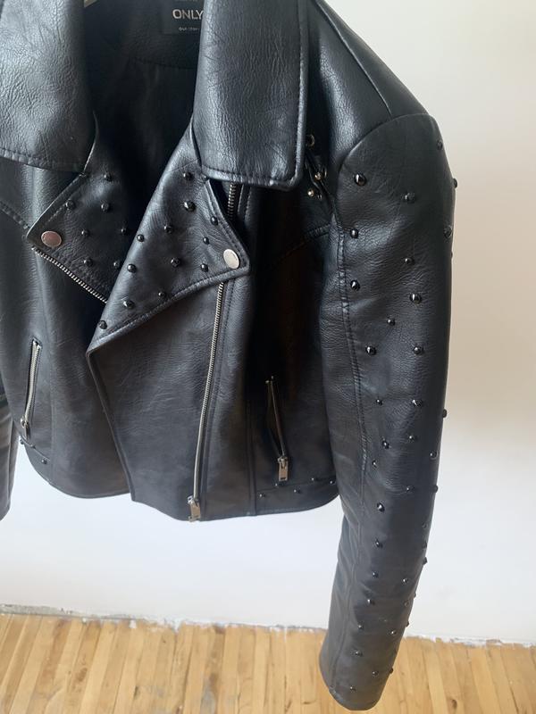 Куртка Only,еко шкіра дуже якісна,не тонка,без явних затертостей,біля воротніка відкручуються залізячки якщо не подобаються,практично ідеальний стан підійде на S-M