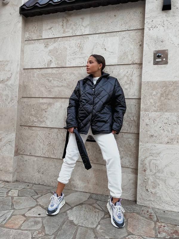 Куртка ⚜️ Мод .687 Тканина : плащовка матова стьобана (силікон 150) Розмір: універсал Колір: беж, чорна, електрик, барбі виміри груди 112 см рукав із плечем 77см довжина по спинці 74 см