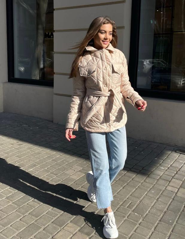 реальні фото Універсальне, трендове стьобане пальто з поясом Код 8864 Синтепон 150, кнопочки фарбовані в колір, найкрасивіші відтінки 😍😍😍 Розміри см та мл Кольори: беж, сірий, фісташка, какао, фрез, чорний #пальто #пояс #бежевый #какао
