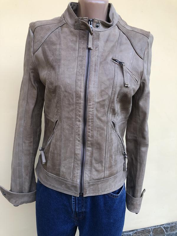 Куртка из натуральной кожи, размер S,M, бежевый мраморный цвет, длинна 59см, грудь 90см, , талия 80см, бедра , плечо 12см, рукав 67см , ширина плеч 40см,в идеальном состоянии