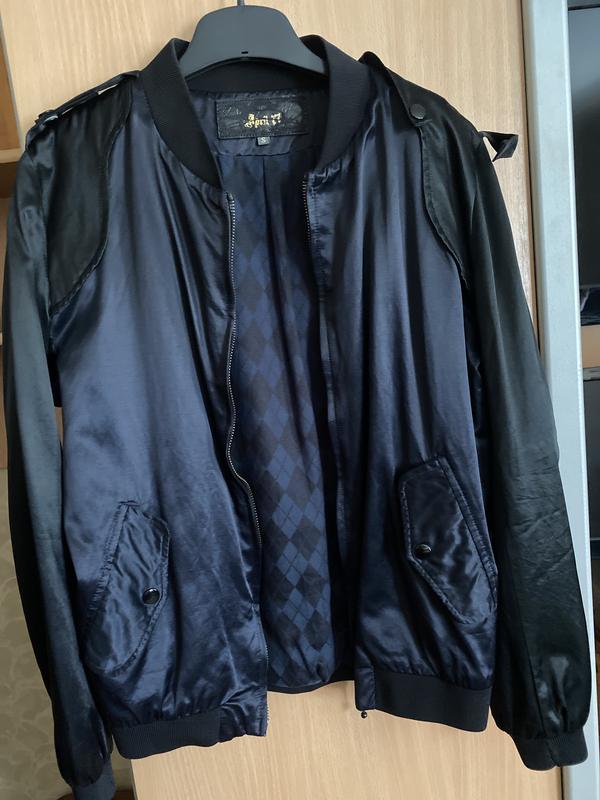 Бомбер оригинальный. Цвет чёрный и чёрный с синим оттенком. Очень интересно смотрится. Подойдёт на размер a, m, и не большую l. Замеры: Пог 50см, длина 63 см, рукав 62-63см. Состояние оч хорошее.