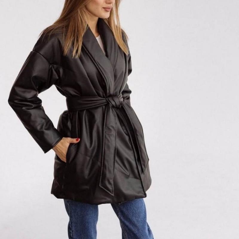 Куртка Мод 888 Тканина :екошкіра матова (наповнювач 250) Розмір: універсал Колір: чорний, бежевий,молоко останні роки все більше і більше набирають популярність вироби з екошкіри - високотехнологічного штучного матеріалу, який так прекрасний зовні і за своїми властивостями. Це не тільки стильно, але і дуже тепло до - 15 ❄️❄️❄️ Виміри Рукав з плечем 74 Довжина 82 Груди 115