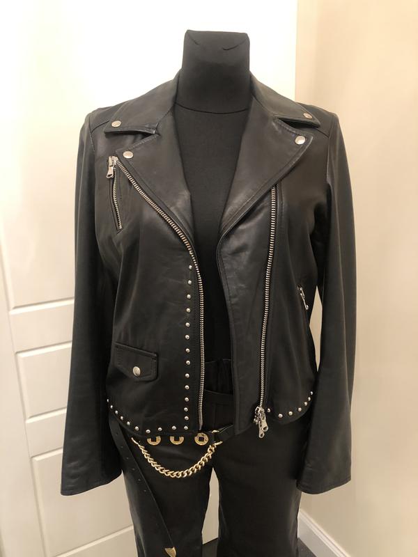 Куртка Silvian Heach из натуральной кожи с металическими заклепками и стильной молнией Модель не теряет своей популярности уже много лет . Silvian Heach — молодой итальянский бренд женской одежды, обуви и аксессуаров Плечи 40 см ПО груди 48 см Длина куртки 57 см Длина рукава 62 см