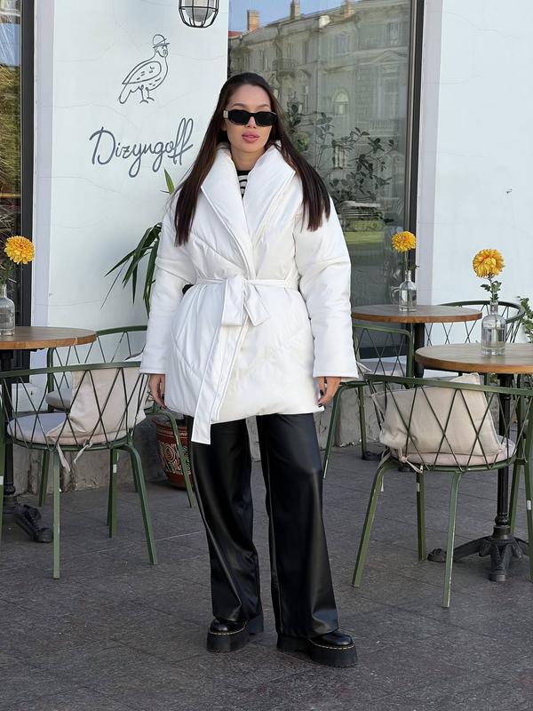 Куртка Мод 888 💣Тканина :екошкіра матова (наповнювач 250) Розмір: універсал Колір: чорний, бежевий,молоко 💥Ціна : 1350 грн останні роки все більше і більше набирають популярність вироби з екошкіри - високотехнологічного штучного матеріалу, який так прекрасний зовні і за своїми властивостями. Це не тільки стильно, але і дуже тепло до - 15 ❄️❄️❄️ ❗️Виміри Рукав з плечем 74 Довжина 82 Груди 115 (с1487)