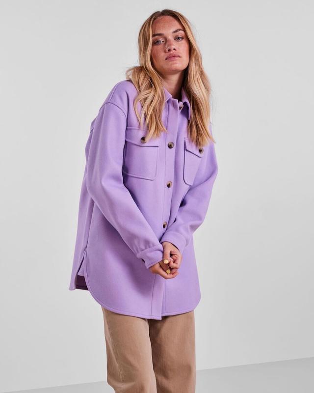 П: Утеплена стильна рубашка-куртка в бузковому кольорі, розмір S (over size). Всі речі нові та з оригінальними бірками. Додаткові фото, фото на собі та заміри скинемо у приватні повідомлення.