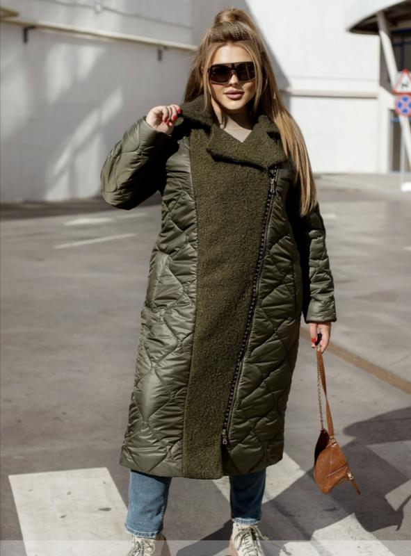 МАТЕРІАЛ: Плащівка, наповнювач-синтепон, силікон 200 (50% силікон 50% синтепон), підкладка, вставка букле-шерсть барашек (до - 15°С) РОЗТЯЖНІСТЬ: немає розтяжності Колір: чорний -сірий, синій-персик, сірий -фреза, капучино -фреза, синій -синій, хакі, сірий -сірий. Оригінальна куртка, яка комбінує в собі плащівку та вставки з тканини вовна - барашек, на яку ви однозначно звернете увагу. У моделі є відкладний комір, який виготовлений зі структурної тканини, яка переходить в вставки та комбінується на рукавах та по основній частині виробу. Цікавим елементом є блискавка, яка розміщена навскоси. Також ми додали врізні кишені на основній частині виробу. Для того, щоб вам було ще тепліше - додайте костюм чи комбінезон з трьохнитки на флісі та доповніть образ черевиками. Орієнтовні заміри готового виробу: 46-48 р-р: довжина куртки 114см, довжина рукава від горловини 71см, обхват рукава 36см, ОГ - 110см, ОТ -114см, OC -120см. 50-52 р-р: довжина куртки 115см, довжина рукава від горловини 72см, обхват рукава 38см, ОГ - 118см, ОТ -122см, OC -128см. 54-56 р-р: довжина куртки 116см, довжина рукава від горловини 74см, обхват рукава 42см, ОГ - 126см, ОТ -130см, OC -136см. 58-60 р-р: довжина куртки 117см, довжина рукава від горловини 75см, обхват рукава 44см, ОГ - 134см, ОТ -138см, OC -144см. 62-64 р-р: довжина куртки 118см, довжина рукава від горловини 76см, обхват рукава 46см, ОГ - 142см, ОТ -146см, OC -152см. 66-68 р-р: довжина куртки 119см, довжина рукава від горловини 77см, обхват рукава 48см, ОГ - 150см, ОТ -154см, OC -160см ❗Ціна може змінюватися, бо курс стрімко зростає 😔 Дякуємо за розуміння 🙏 ☑️Залежно від кольоропередачі Вашого монітору, відтінок виробу може дещо відрізнятися. 🔹Оплата на картку: Приватбанка, Монобанка 🔹Накладний платіж по передоплаті (Нова пошта) 🔹 Обмін та повернення З радістю відповім на ваші питання, допоможу підібрати розмір🌷 2413