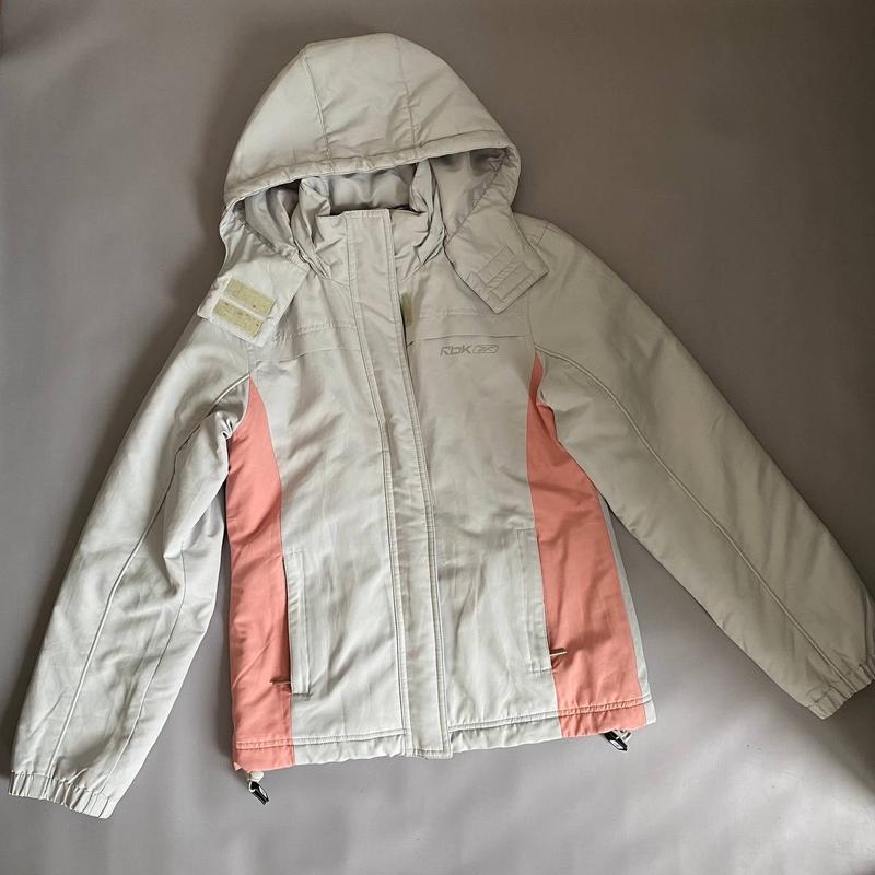 Куртка Reebok Размер: s Состояние: идеал Качественная фурнитура. Есть внутренний карман на замке. Куртка застегивается на молнию и на липучке, что позволяет лучше скрытую от ветра. Капюшон на кнопках, отстегивается. Внизу куртка затягивается. Замеры: Длина изд без капюшона - 61 см Рукав - 61,5 см ПОГ - 46 см По резинке внизу - 47,5 см