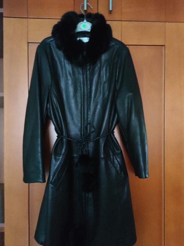 Кожаное пальто куртка плащ женские с отделкой из меха.