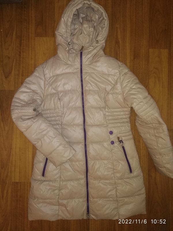 Зимове пальто бежевого кольору, приталеного крою. Стан ідеальний. Недолік на останньому фото. Розмір реально XL- L. Заміри ширина під пахвами 52 рукав -63, довжина -83