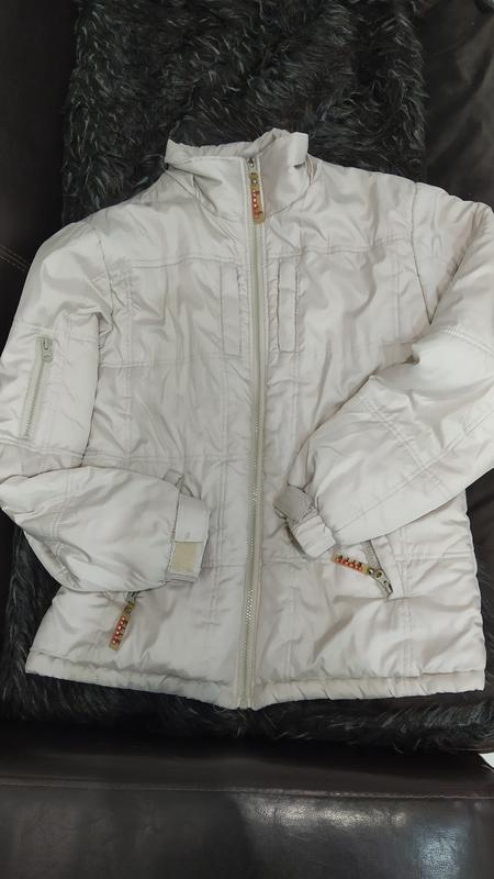Курточка на флісі. Тепла. Бежевого кольору,на замку Всі замки робочі. Ширина по низу курточки 50см. Довжина курточки від плеча до низу -64-65см. Довжина рукава від плеча -59см. Плечі -43-44см.