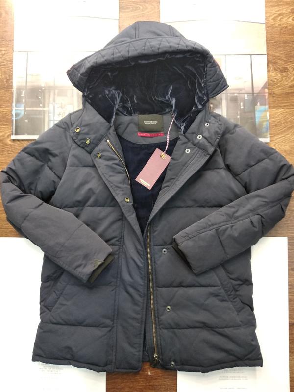 Size : XS ( под руками 52 , длина изделия 72 , рукав 60 см , по плечам 41 см ) .Цвет т.синий (воронье крыло) . Капюшон не съёмный , косой удобный карман для рук . Подклад - велюровый. Замок , панель на кнопках . Состояние нового изделия. На синтепоне.