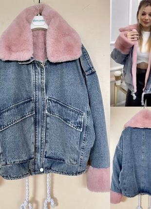 Очень классная джинсовка На меху ❄️ Евро зима. Воротник съемный. Размер универсал 44-48 ПОГ 56, рукав от воротника 72, длина 61 см.