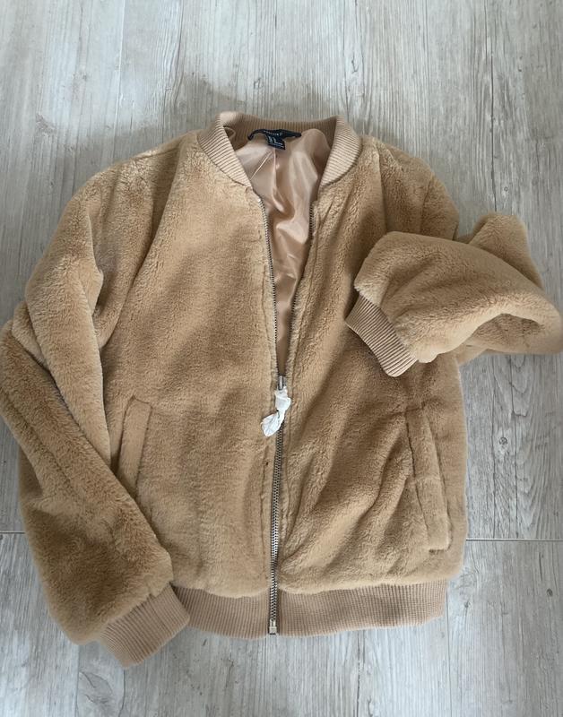 Курка -бомбер , штучные хутро оприємного кольору Кемел, розмір М