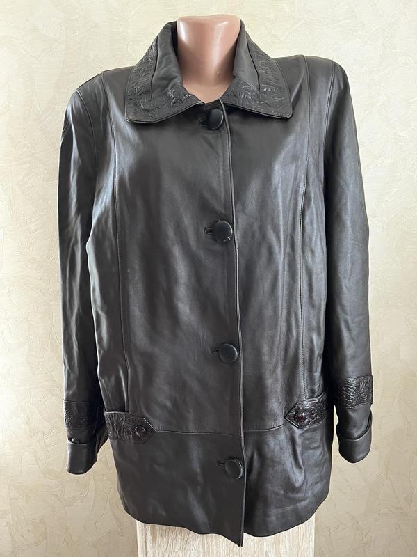 Куртка з натуральної шкіри. Виробник Турція . Ґудзики обтягнуті штучною шкірою і потерлись. Заміри: ПОГ-62; ПОТ -62; довжина-67; довжина рукава-62.