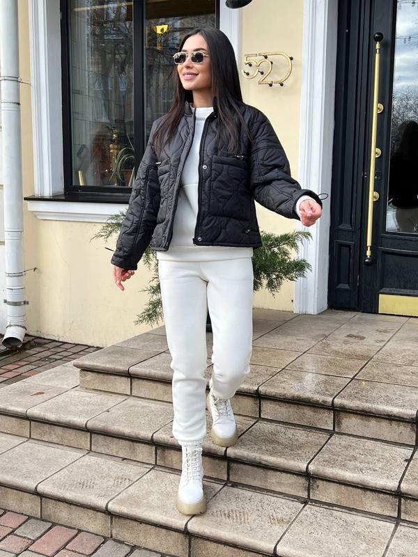 ✅‼️новинка‼️✅ Дуже крута моделька в стилі ,,Зара ,,. Ідеальна посадка , якісна тканина та пошиття , базові кольори . Це просто незамінна річ у гардеробі кожної модниці . ✅ мод 157нестр Розміри : (42-46) універсальний Тканина : плащівка стьобана на 150 синтепоні + підкладка ✅заміри по виробу: ОГ-115 Довжина рукава від горл.—70 Довжина по спинці -59 см ✅ курточка вільного крою, зі спущеною лінією плеча ; Низ курточки та рукава на резинці з фіксатором , що дозволяє регулювати ширину виробу . ‼️Всередині великих накладних карманів є маленькі з резинкою та фіксатором. Курточка на блискавці та кнопках.( кнопки в колір плащівки ) ✅ колір: чорний , т.беж, св.беж