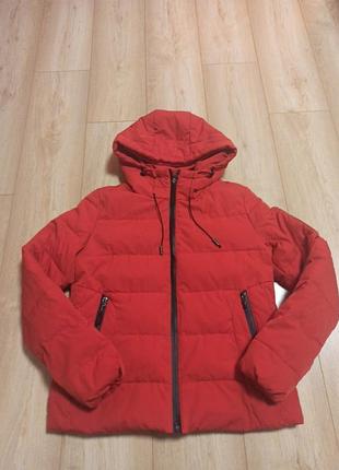 Гарна куртка, в дуже хорошому стані, дуже тепла, можна і взимку одягати, з пошкоджень тільки верхушка бігунка відірвалась, але застягається без проблем, і з середини низ куртки має темні плями від нових джинсів перебилось, думаю можна чимось вивести, як вдягнута плям не видно, на мене мала, розмір М, але до 50 р підійде.