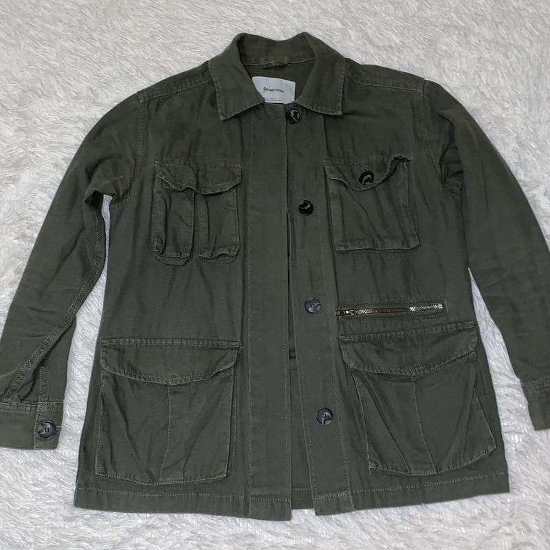 Зеленая куртка в стиле милитари на пуговицах, размер S, подойдет и на М