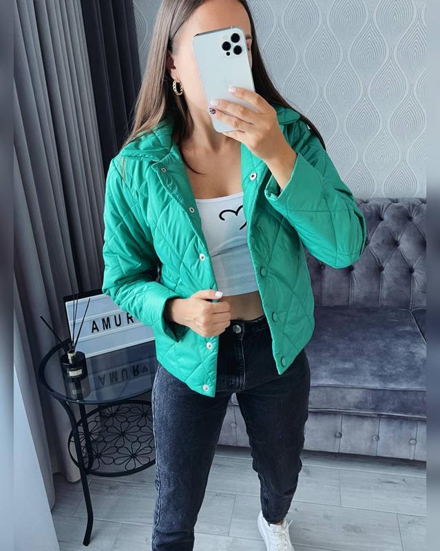 Куртка Размеры 42-44, 46-48, 50-52, 54-56 Куртка стеганая на силиконе 100, плащевка с водоотталкивающей пропиткой, легкая и теплая. Застегивается на кнопки, хорошо работают, не вылетают Имеет отложной воротник и боковые удобные карманы Цвета: черный, малина, зеленый и пудра ------------------------