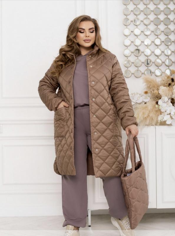 МАТЕРИАЛ: Плащевка, наполнитель-синтепон 150), подкладка (до - 5°С) РАСТЯЖНОСТЬ: отсутствие растяжимости 🌈Цвет: серый, синий, зеленый, хаки, капучино, черный Ваша любимая модель, уже доступна в новом амплуа. Стеганая куртка средней длины с высоким воротником и длинными рукавами. Изделие застегивается на ряд кнопок на планочке. По бокам объемные накладные карманы. Разделение закруглено и дополнено боковыми разрезами. Куртка легко сочетается как в образах спортивного стиля, так и в стилизациях на каждый день. Дополняйте любимым костюмом и кроссовками и образ на любой случай готов! Ориентировочные замеры готового изделия: 46-48 р-р: длина куртки 97/99см, длина рукава от плечевого шва 63см, обхват рукава 36см, ОГ 108см, ОТ -108см, OC -114см. 50-52 р-р: длина куртки 98/100см, длина рукава от плечевого шва 64см, обхват рукава 38см, ОГ - 116см, ОТ-116см, OC -122см. 54-56 р-р: длина куртки 99/101см, длина рукава от плечевого шва 66см, обхват рукава 42см, ОГ - 124см, ОТ -124см, OC -130см. 58-60 р-р: длина куртки 100/102см, длина рукава от плечевого шва 67см, обхват рукава 44см, ОГ - 132см, ОТ -132см, OC -138см. 62-64 р-р: длина куртки 101/103см, длина рукава от плечевого шва 68см, обхват рукава 48см, ОГ - 140см, ОТ -140см, OC -146см. 66-68 р-р: длина куртки 103/106см, длина рукава от плечевого шва 69см, обхват рукава 50см, ОГ - 148см, ОТ -148см, OC -154см ❗Цена может меняться, потому что курс стремительно растет 😔 Благодареннее за понимание 🙏 ☑️В зависимости от цветопередачи Вашего монитора, оттенок изделия может несколько отличаться. 🔹Оплата на картку: Приватбанка, Монобанка 🔹Накладной платеж по предоплате (Новая почта, Укрпочтта) 🔹 Обмен и возврат С радостью ответь на ваши вопросы, дам подобрать размер🌷 2430
